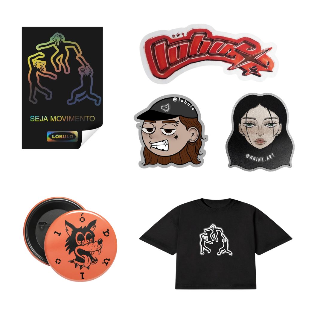 Edição especial criada em comemoração aos 10K da Lóbulo. Combo leva adesivos, camiseta e broche.